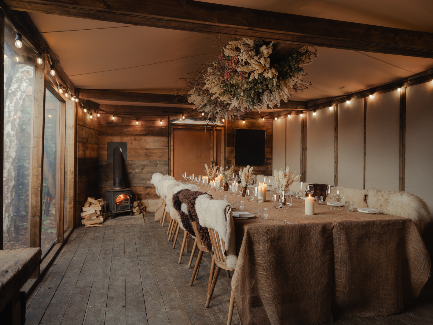 The Secret Garden Room provides a backdrop for gatherings of up to 28 guests. For larger groups, our outdoor safari tent can accommodate up to 48 guests for a seated meal, or up to 60 for drinks and canapés.